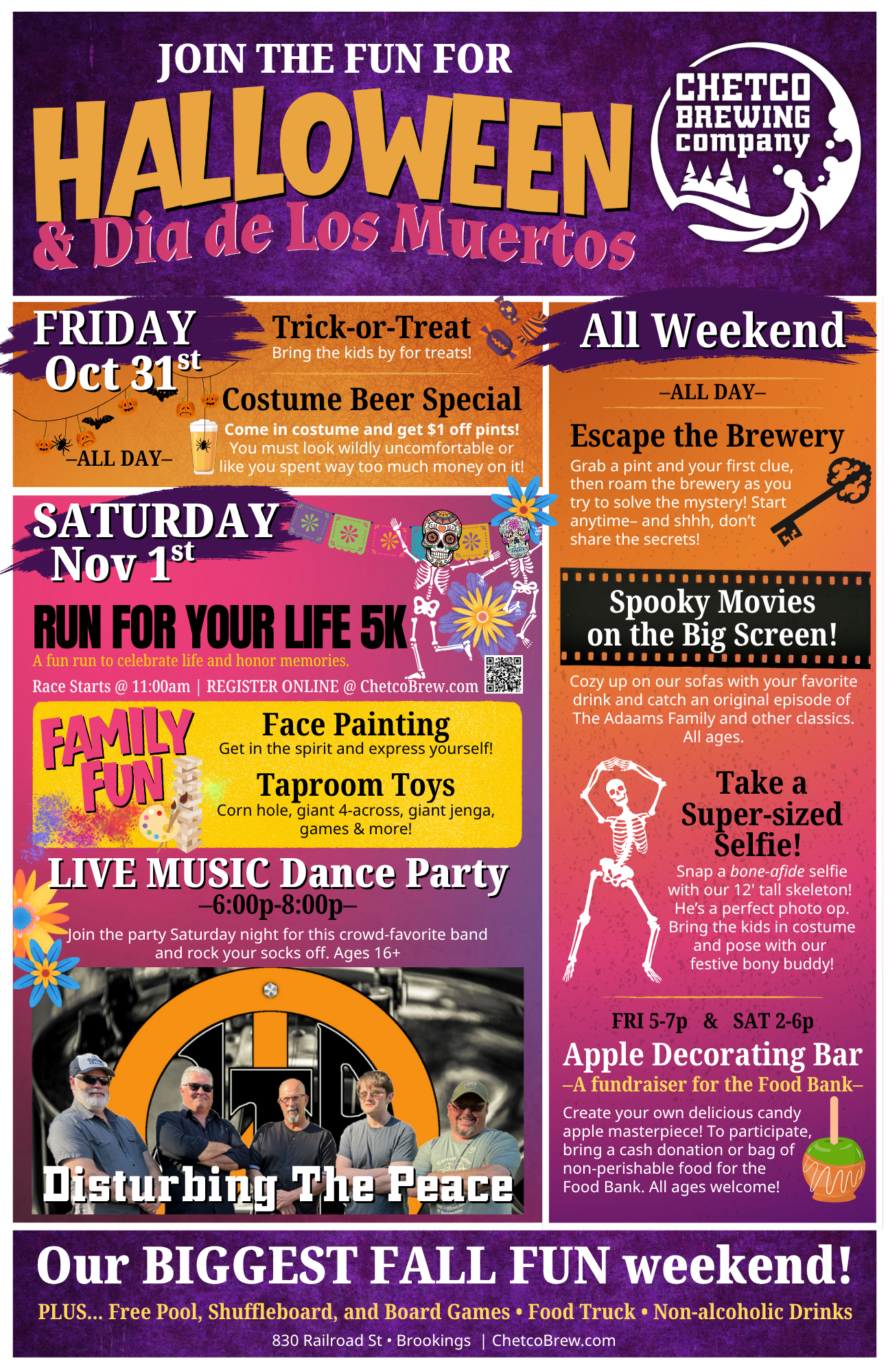 Halloween Family Fun Weekend Friday, October 31, 2025 12:00 PM 8:00 PM Chetco Brewing Company Tap Room 830 Railroad Street Brookings, OR, 97415 United States (map) Google Calendar ICS